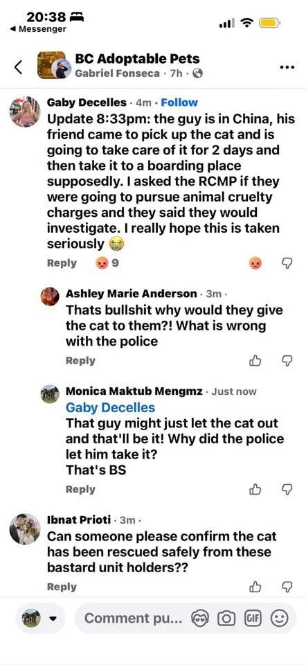 BC SPCA 高级媒体与内部传播总监 Kaila Wolf 表示,动物保护团队已对该猫展开调查,并称在过去 48 小时里,由于社交媒体关注度的增加,情况得到了更多重视。
