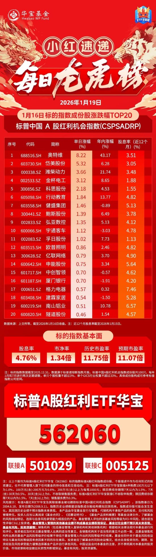 小红日报|电力设备表现靓丽,标普A股红利ETF华宝(562060)标的指数收跌0.25%