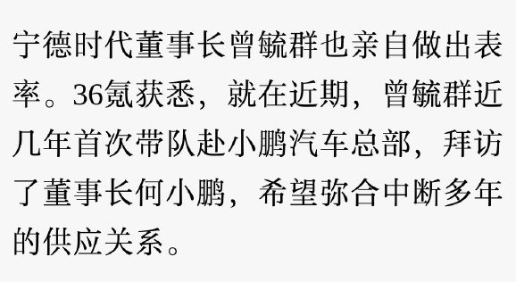 电动知家消息,12月27日,据36氪报道,宁德时代董事长曾毓群近日率队前往小鹏汽车广州总部,与董事长何小鹏进行了深入交流。这次高层会晤旨在弥合已中断多年的供应关系,重新探索合作可能。自2021年双方关系出现裂痕以来,这是两家公司最高领导人之间的首次正式互动。