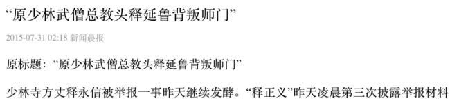 而且更令人脊背发凉的是,当年还有30名少林弟子跳出来(划重点——是30名少林弟子),表示已经查到了举报释永信的人,这个人就是释延鲁,同时这30名少林弟子还表示,这个人之所以举报释永信,是因为他当初被少林寺“迁单还俗”(相当于被少林寺“踢出师门”了的意思),所以他就一直对释永信怀恨在心,所以就恶意诋毁、诽谤释永信: