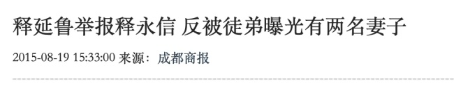首先就是少林寺的一些徒弟跳出来,表示这个举报释永信的僧人疑似就是释延鲁,而这个释延鲁,自己就有两名妻子,这个人压根不是什么好鸟: