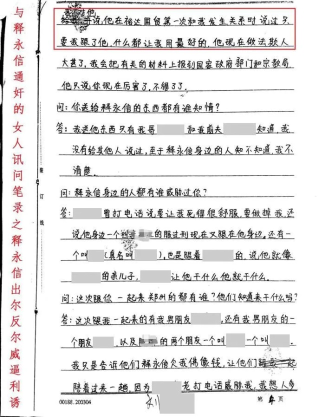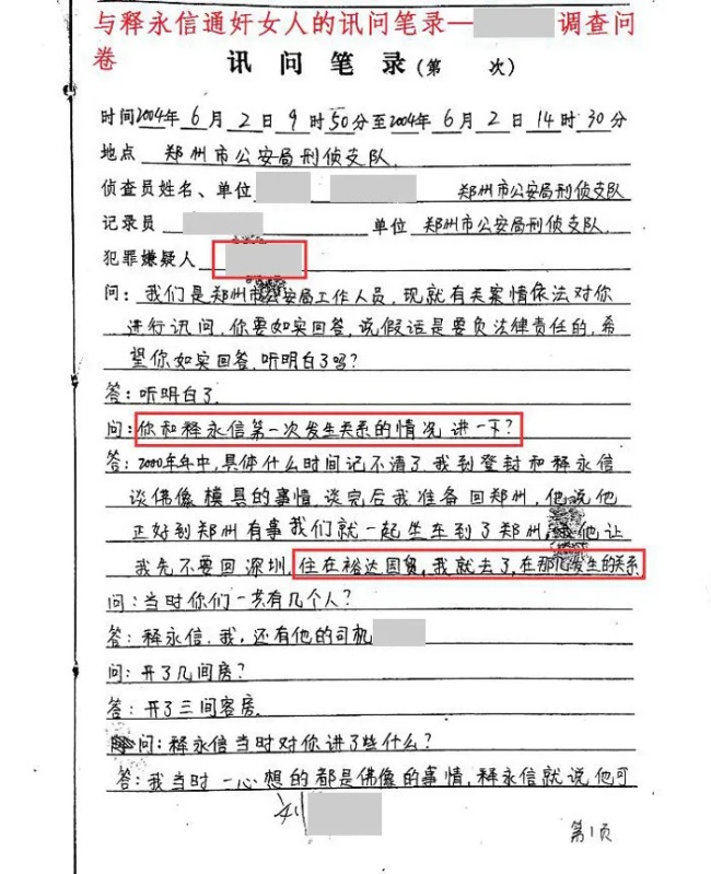 释永信早就被多次举报——其中一份“通奸笔录”的曝光,揭开了他多次发生关系致情妇怀孕的丑闻。