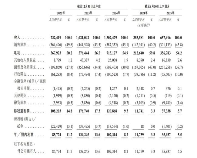 据招股书,2022-2024年坦博尔营收分别为7.32亿元、10.21亿元、13.02亿元,三年复合增长率达到33%,2025年上半年营收为6.58亿元,同比大增85%。