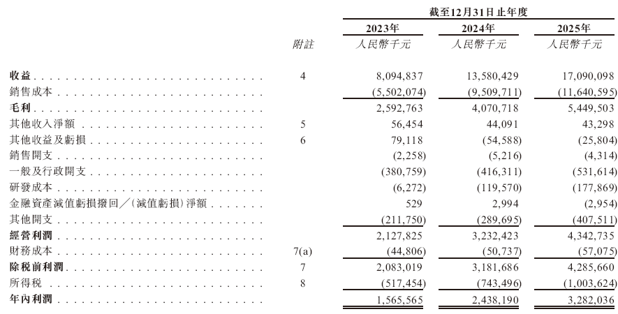 招股书显示,在过去的2023年、2024年和2025年,山金国际的营业收入分别为人民币80.95亿、135.80亿和170.90亿元,相应的净利润分别为人民币15.66亿、24.38亿和32.82亿元。