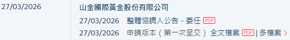 2026年3月27日,总部位于北京、注册地位于内蒙古锡林郭勒盟西乌珠穆沁旗的山金国际黄金股份有限公司Shanjin International Gold Co., Ltd.(简称"山金国际”)在港交所递交招股书,拟在香港主板挂牌上市。这是继其于2025年9月24日递表失效后的再一次申请。