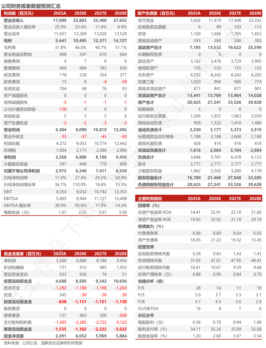 ◾事件:公司发布2025年年报。2025年公司实现营收171亿元,同比增长25.9%,归母净利润29.7亿元,同比增长36.8%,扣非归母净利30.3亿元,同比增长37.0%;单季度,Q4公司实现营收21亿元,同比增长38.9%,环比下降63.4%,归母净利5.1亿元,同比增长14.9%,环比下降40.7%,扣非归母净利5.9亿元,同比增长37.3%,环比下降30.9%,低于预期。我们认为公司业绩低于此前预期主要系四季度留有金库存影响,公司生产经营整体稳健。