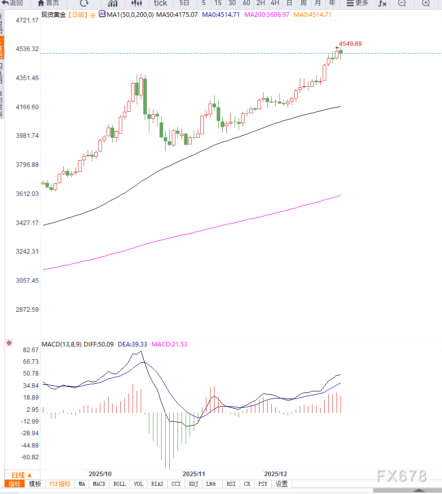同时,全球地缘局势仍存在反复风险,也持续为黄金提供中长期支撑。从宏观环境来看,临近新年假期,全球金融市场整体交投清淡,波动更多由技术性因素和短期资金行为主导。