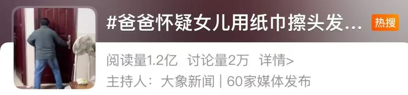 “爸爸怀疑女儿用纸巾擦头发暴力打砸”。