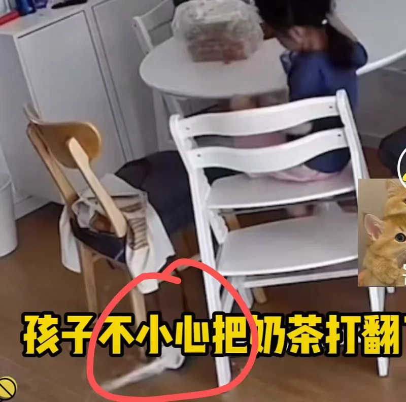 女儿不小心打翻了奶茶,害怕地去找妈妈。