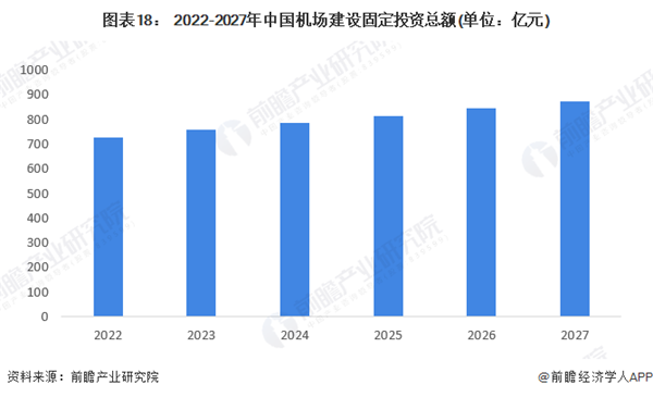可以看出,中国航空运输行业发展潜力较大,随着居民收入的提升,消费观念的改变,乘坐飞机的旅客将持续增长;另外,中国电商行业不断壮大,依赖航空货物运输业的发展。且国务院印发的《国家综合立体交通网规划纲要》提出,到2035年,中国民用机场数量将增加约190个,旅客和货物吞吐量将创造新高。智慧机场等概念的提出,将加大现有机场的改造升级。因此,机场新建和改造还有较大的空间。2020年,我国民航固定资产投资总额达1627.59亿元,根据近几年机场系统固定投资额占比测算,2021年,我国机场建设投资规模约697.4亿元。假定未来14年我国机场数量匀速增长至400个,且我国机场数量与机场固定资产投资增速保持同步,得出2027年我国机场建设固定投资规模超过870亿元。