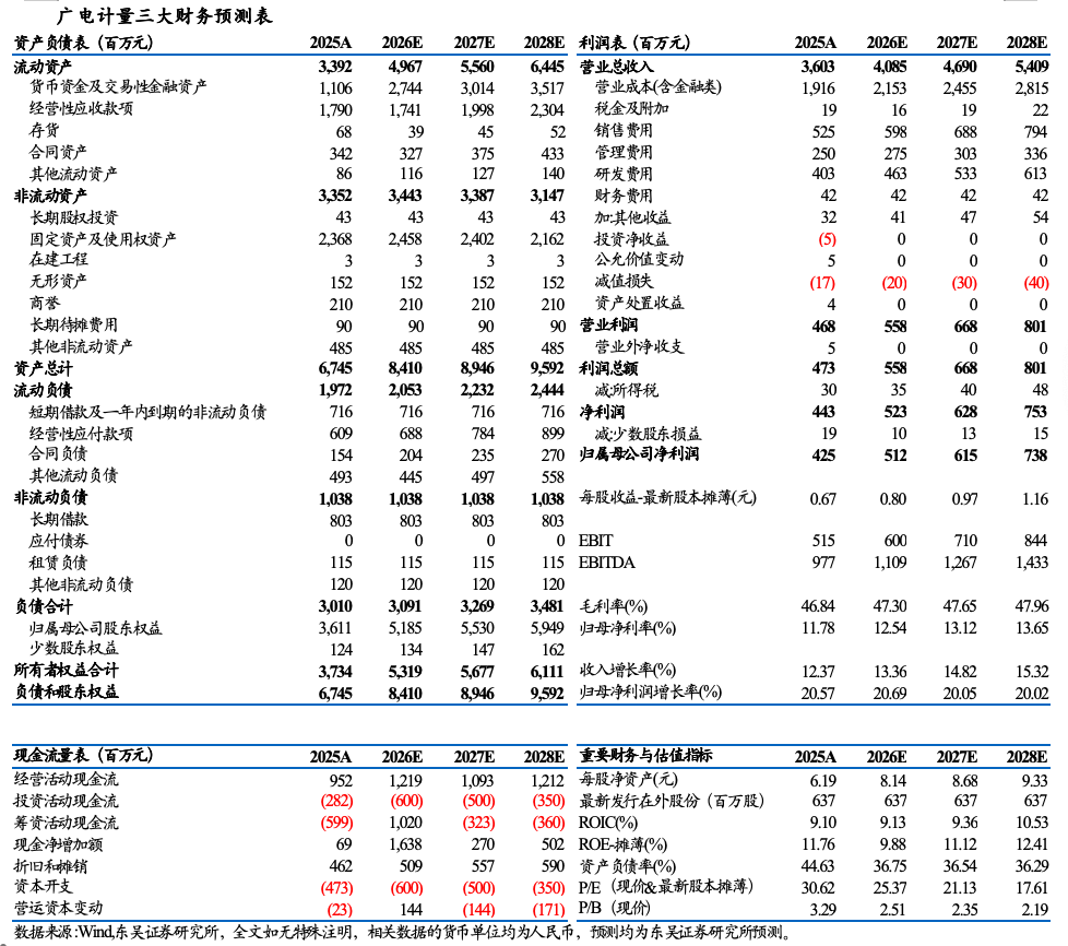 2025年公司销售毛利率46.8%,同比下降0.4pct,销售净利率12.3%,同比增长1.1pct,净利率提升主要受益于减值损失减少(信用减值损失缩减约0.54亿元/影响净利率1.5pct)。分业务,除EHS评价服务外,各板块毛利率保持稳定:①计量服务2025年毛利率49.9%,同比下降0.6pct,②可靠性与环境试验2025年毛利率50.6%,同比下降0.3pct,③生命科学2025年毛利率40.2%,同比下降0.4pct,④电磁兼容2025年毛利率55.1%,同比增长0.1pct,⑤集成电路测试2025年毛利率45.7%,同比增长0.5pct,⑥数据科学2025年毛利率54.8%,同比下降1.1pct,⑦EHS评价服务2025年毛利率28.0%,同比下降10pct。2025年公司期间费用率33.8%,同比增长1.3pct,其中销售/管理/研发/财务费用率分别为14.6%/6.9%/11.2%/1.2%,同比分别增长0.4/0.1/0.4/0.5pct。