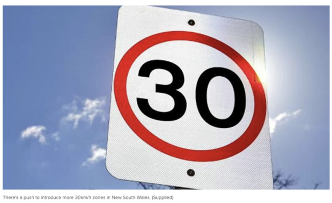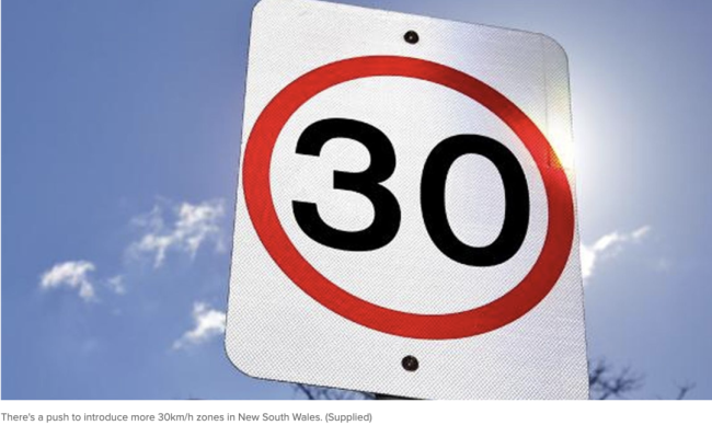 目前,悉尼仅有两个30公里/小时限速区:一个位于中央商务区的Domain周边,另一个在Manly。利物浦曾设有临时30公里限速区,但因当地社区反对而取消。