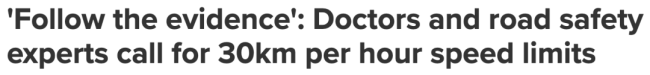 近日,当地医生与道路安全专家联合发声,呼吁政府“以证据为依据”,将居民区默认限速从50公里/小时降至30公里/小时。