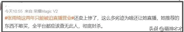 从张雨绮目前的舆论来看,她试水的效果很差,网友呼吁封杀的意愿很强烈,纷纷表示连直播带货都不应该被允许。