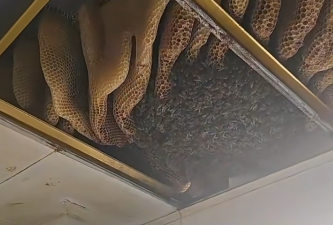据了解,这户人家已经四五年没装过热水器了,厨房原来的热水器排气孔,一直闲置着没封闭,蜜蜂就是从这个孔钻进去,在吊顶里安了家、筑了巢。