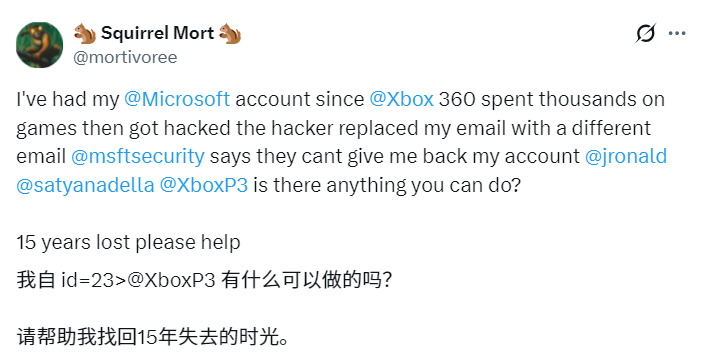 虽然该玩家多次联系客服寻求帮助,但得到的反馈往往是令人心碎的公式化回复,这意味着,从Xbox 360时代起积累的数字资产,可能因黑客的几分钟操作而化为乌有。