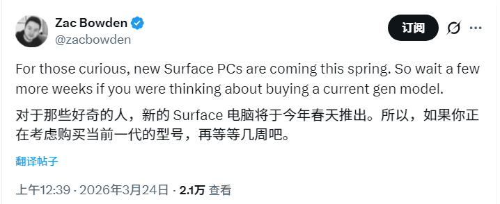 微软上一次更新Surface Laptop和Surface Pro硬件距今已近一年,去年发布的Surface Laptop 13和Surface Pro 12定位为更小更便宜的替代选项,而ARM架构的Surface Laptop 7和Surface Pro 11则承担主力角色。