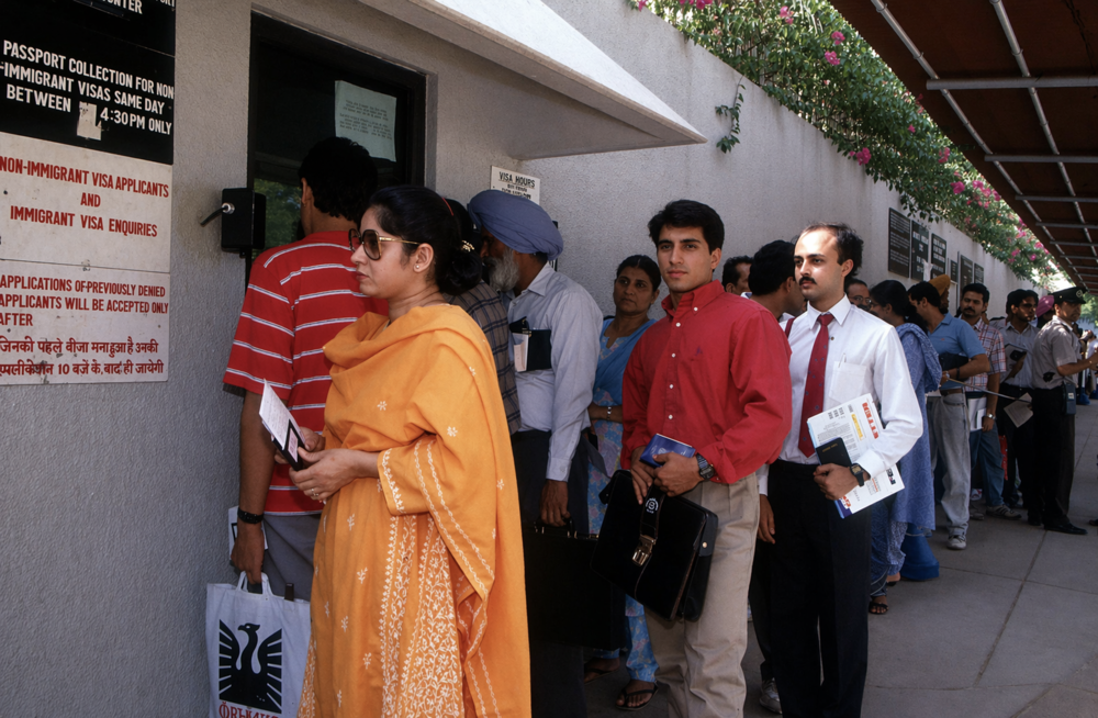 1992年,印度人排队申请美国签证