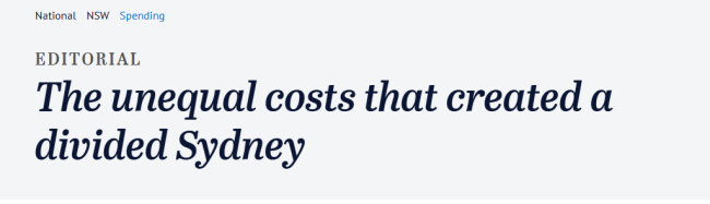 据澳洲媒体 The Sydney Morning Herald 报道,悉尼正在被“财富分界线”切开: