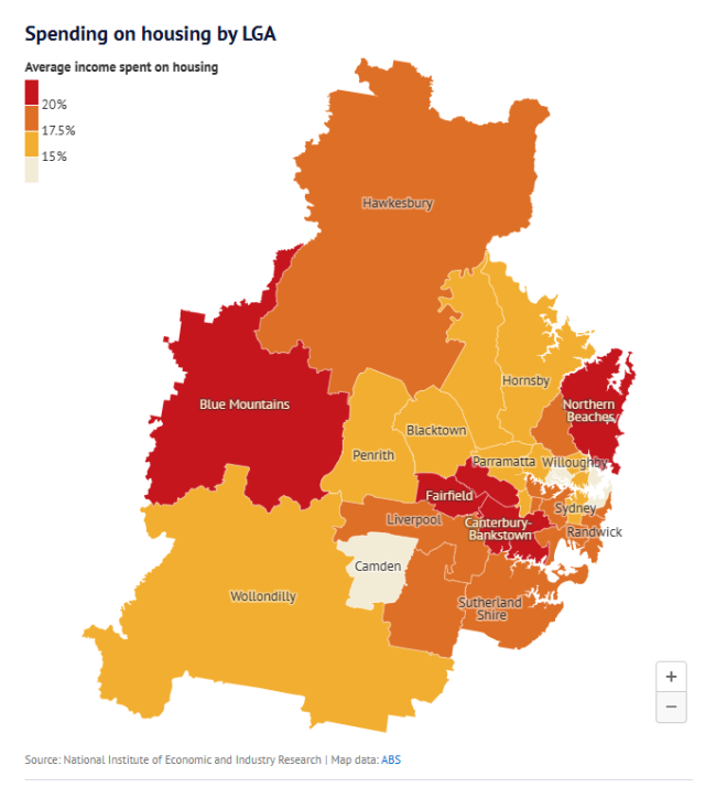 ACOSS 及 The Guardian 形容这一带为“悉尼的 cost-of-living hotspots(生活成本承压区)”。