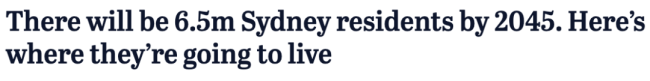 到2045年,悉尼预计会涨到650万人,增幅约 23%,主要都是靠海外移民带动的。