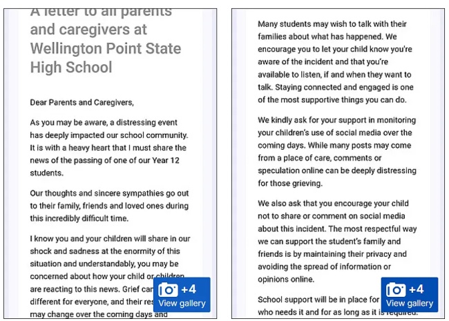 Wellington Point State High School校长Robyn Burton-Ree表示,她目前不便作出评论。