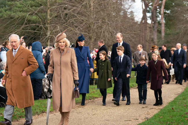 圣诞当天早上,重头戏是查尔斯和卡米拉将率领威廉凯特一家,步行前往圣玛丽玛格达琳教堂做礼拜, 这可是王室每年向公众展示家庭团结的经典场面 。 礼拜结束后回家,一家人会先喝点小酒暖暖身子,然后享用传统的圣诞午餐 —— 主菜是火鸡,配上各种经典配菜。