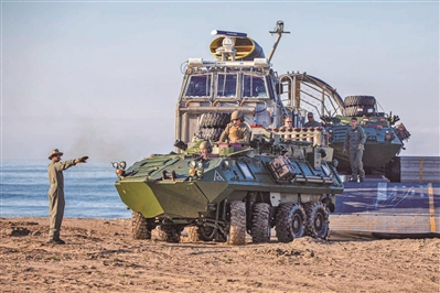 | 美国海军陆战队员卸载轻型装甲车。 |