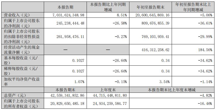 10月27日,东方雨虹(002271)正式发布2025年第三季度报告。报告显示,公司前三季度实现营业收入206.01亿元,归属于上市公司股东的净利润为8.10亿元,经营活动产生的现金流量净额实现4.16亿元,同比增幅高达184.56%。其中,第三季度东方雨虹单季营业收入70.32亿元,同比增长8.51%。