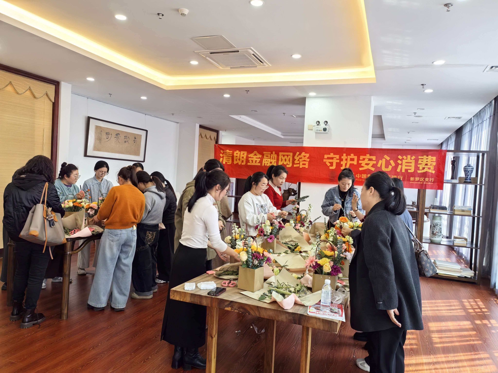 近日,邮储银行新罗区支行特邀幼儿园教师代表,举办了一场“花艺传情+金融护航”的双主题活动——将插花的雅致、节日的温情与金融安全知识深度融合,为女教师们送上了一份兼具仪式感与实用性的专属礼遇。