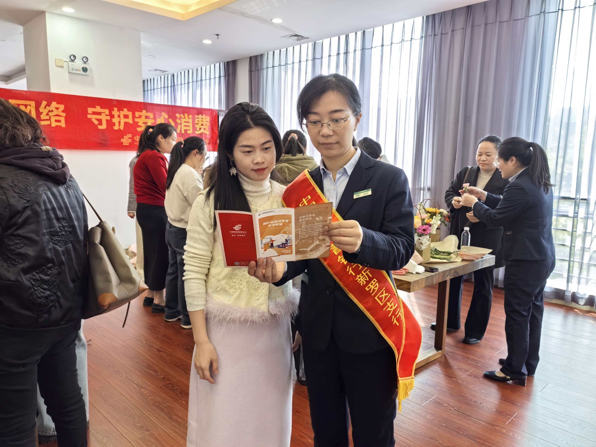 插花体验间隙,“金融知识小课堂”同步开讲。围绕“清朗金融网络,守护安心消费”主题,工作人员结合高发金融诈骗案例,用“家常话”拆解无资质引流、个人信息保护、理性理财避坑、互联网贷款乱象等核心知识点。“陌生来电说‘账户冻结’要转账别信!”“‘高收益、零风险’理财多是陷阱!”工作人员重点提醒女性群体,需警惕不明链接、严守银行卡密码,抵制高息诱惑,遇可疑情况及时核实报警,筑牢“钱袋子”防线。真实案例与细致讲解引发共鸣,互动氛围热烈。