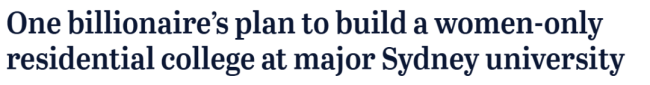 香港亿万富翁向新南威尔士大学捐赠3000万澳元,用于建造一座女性专属住宿学院,这是该校收到的最大一笔用于学生住宿的慈善捐款。