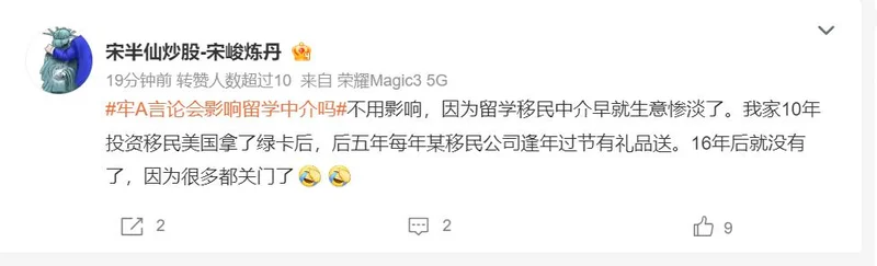 也有网友透露,留学移民中介的生意早就很惨淡了,都恨死牢A了,尤其是美国移民中介和留学中介可能因牢A陷入斩杀线。