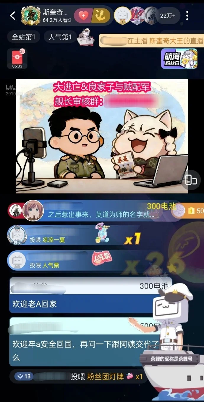 牢A回国B站首播直接热度全站第一,64万人。根据他的简述,他上个月常常只能睡两小时,也少洗澡(怕被害),然后是做了四个假身份,有收到威胁信,他直觉很准,在上时报前2天就逃跑了。逃跑过程有放烟雾弹,而且动用群众力量时包装得合理合法,不像是专门帮牢a。