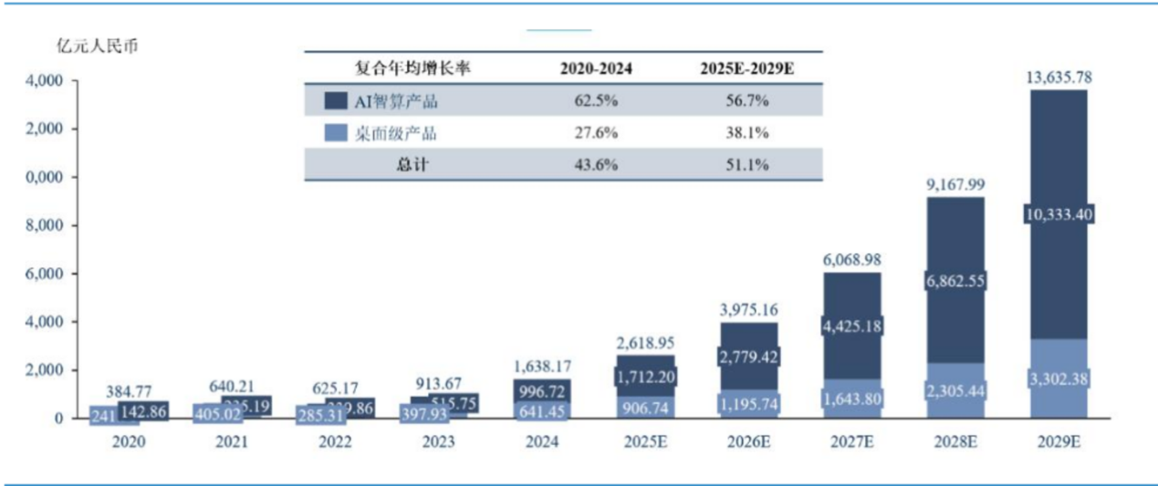 资料来源:弗若斯特沙利文,华金证券研究所备注:AI智算产品口径包括数据中心端(应用于智算中心中AI训练和推理等场景的GPU及相关产品)、边缘计算端(应用于数字孪生、汽车、机器人等边缘计算场景的GPU、SoC芯片及相关产品)、其他云计算端等;桌面级产品口径包括主要用于AIPC、游戏PC及办公PC等场景的GPU及相关产品等