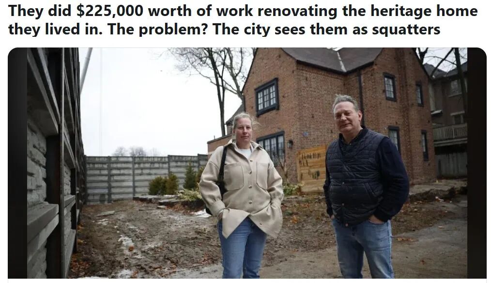 他们免费住进市政府的历史老宅,自费投入22.5万加元翻修,本以为创造了“双赢”局面,最终却被裁定为“非法占屋者(squatters)”。