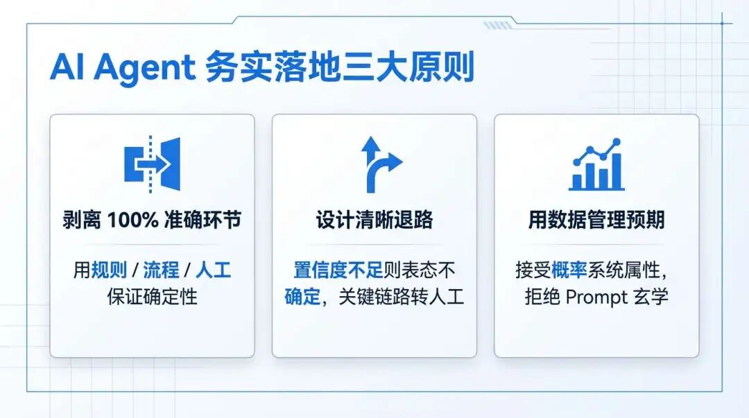 - 为 Agent 设计清晰的“退路”:置信度不够就说“不确定”,关键链路随时可以升级到人工,而不是硬撑着给一个看似完整的答案