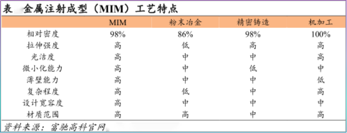 答案是上海富驰自身具有的资源—金属注射成形MIM材料。