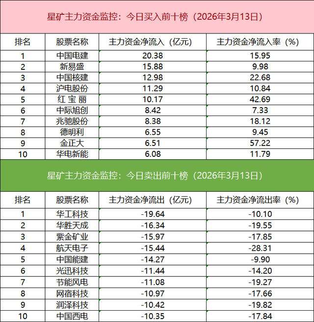 从个股主力资金监控数据来看,主力资金净流入前十的个股所属板块较为分散,中国电建净流入居首。