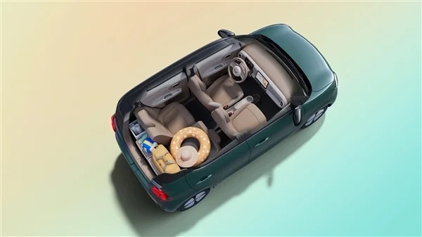 不同于初代方盒子,第五代宏光MINIEV外观采用“甜趣方糖”设计语言,方形经典轮廓搭配圆润曲线,营造“笑颜”前脸和“向日葵酒窝”,并搭配圆趣星环LED大灯组,提供绿悠悠、白绒绒、灰萌萌三款全新复古车色,整车尽显呆萌。