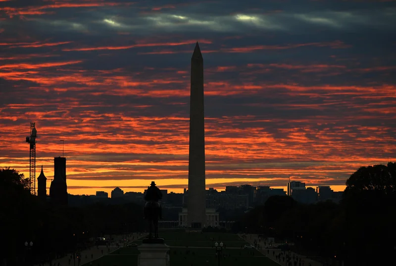 这是2025年10月15日拍摄的日落时分的美国华盛顿纪念碑。新华社记者李睿摄历史账:政府、工会运动、社会共识同步退化