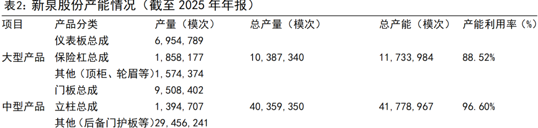 公司25年4月获安徽瑞琪70%股权。自此,公司整车大内饰产品布局完善,当前乘用车内饰单车价值约6500元,商用车内饰单车价值约4500元,仪表板总成在国内市占率达23%,扩展保险杠总成等外饰产品,单车价值约2700元;拓展座椅产品,单车价值增量有望从2000元-4000元-上万元水平提升。