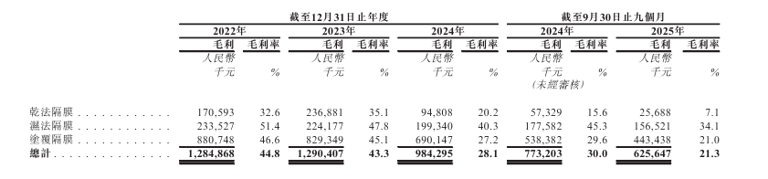 于2022年、2023年、2024年、2025年截至9月30日止九个月,公司毛利率分别为44.8%、43.3%、28.1%、21.3%。