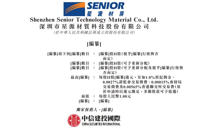据港交所1月30日披露,深圳市星源材质科技股份有限公司(星源材质,300568.SZ)向港交所主板递交上市申请,中信建投国际为其独家保荐人。该公司曾于2025年7月7日递表港交所。