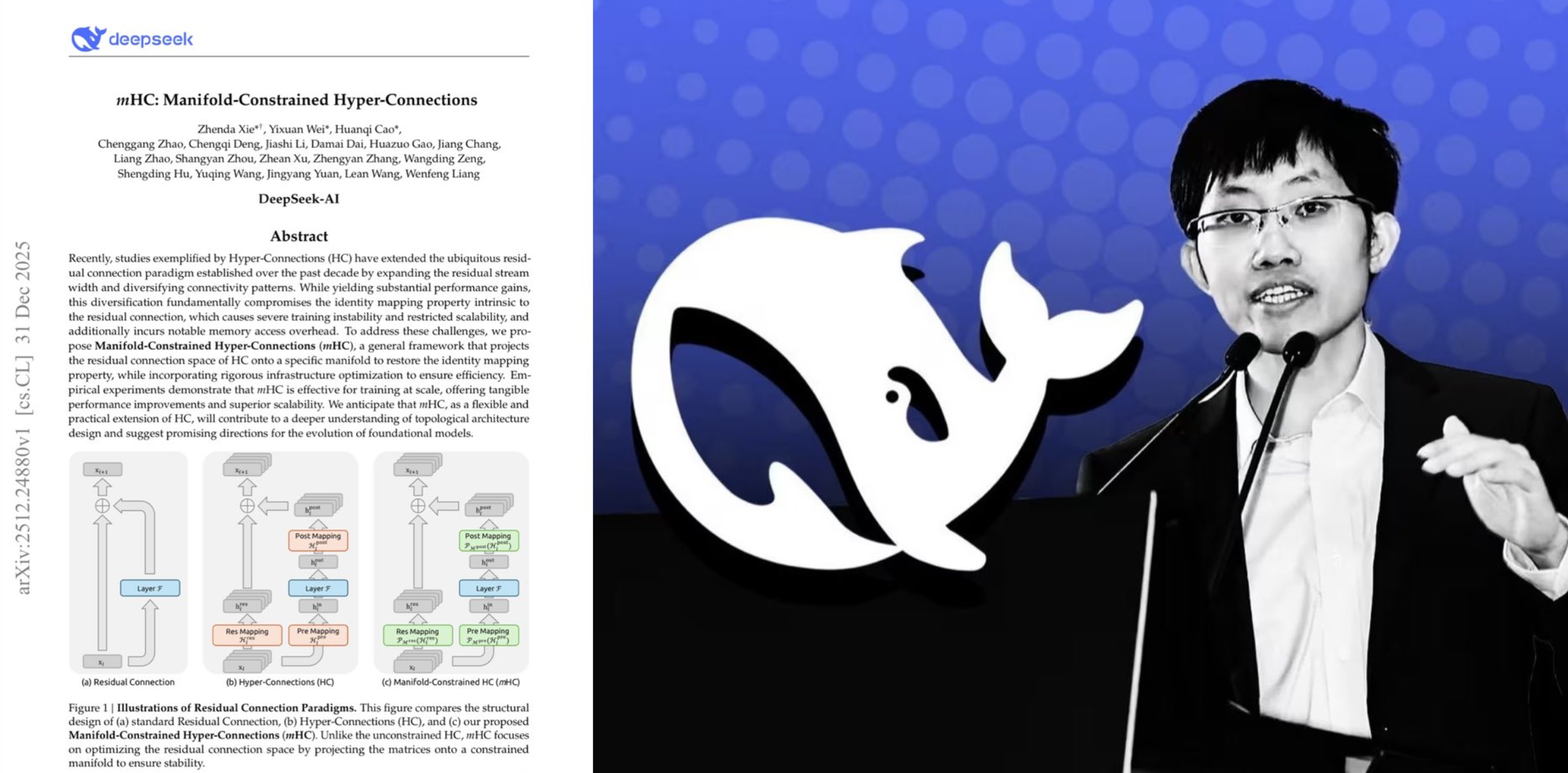 用普通人能理解的方法来解释,残差连接是开辟了一条AI大模型的新型高速公路,HC技术提高了车道数,但会车速越快越容易失控,DeepSeek的mHC相当于装了红绿灯,确保高速的同时也不失控。