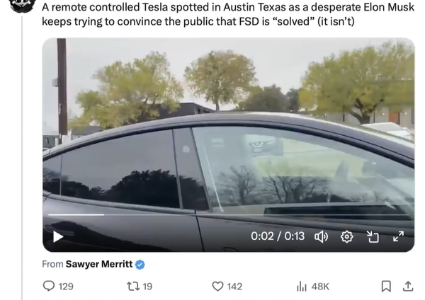 无安全员、无乘员 特斯拉启动无人驾驶Robotaxi路测 Source 马斯克昨日证实,公司已在得克萨斯州奥斯汀启动无人驾驶Robotaxi路测,测试车辆内未配备任何乘员。其中两辆特斯拉Model Y Robotaxi被目击在奥斯汀公共道路上行驶,车内空无一人。 自今年夏季Robotaxi项目启动以来,其核心目标始终是移除安全监督员,并实现完全无人驾驶的载客运营。 上周,马斯克确认:“将在未来三周内从车辆中移除安全监督员”。 如今,这一目标已接近成为现实,特斯拉的努力正逐步取得成果。