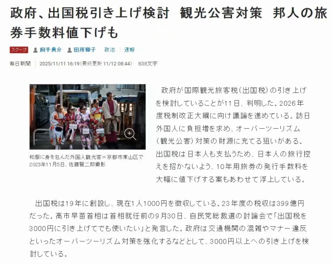 值得注意的是,此次涨价并非孤立动作。日本自民党已同步讨论把 “国际观光旅客税”(离境税)从现行的 1000 日元提高至 3000 日元,并计划在 2028 年推出“日本版 ESTA ”——免签入境者须在线预缴约 3000 日元电子审查费。加上各地陆续开征的“住宿税”,一名普通外国游客仅在“入境—停留—出境”环节就可能额外支付超过 500 元人民币的税费。