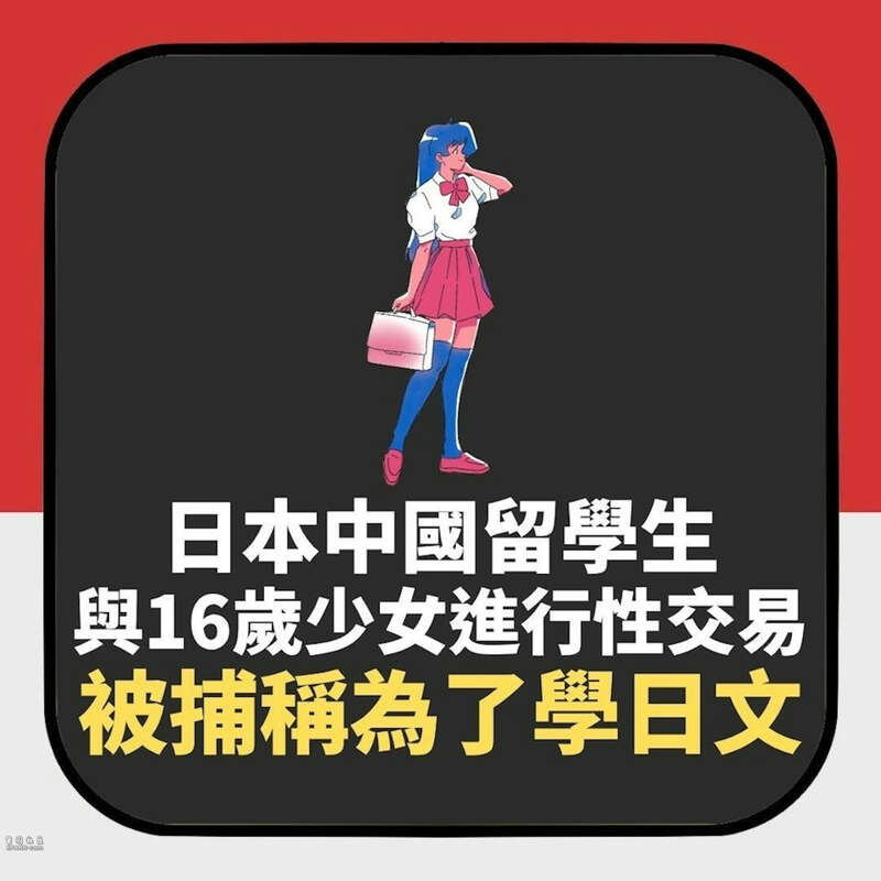 延伸閱讀:中國28歲留學生「嫖16歲日本女高中生」被捕 解釋:為了學日語(點擊放大瀏覽)