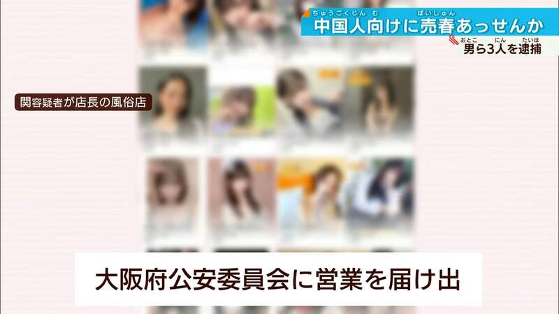 今年9月,大阪府警方逮捕了一家派遣型(到府)風俗店的中國籍店長。警方稱,該店專門面向訪日中國遊客,為他們介紹日本女性,甚至在網上口碑中標榜「本番(性交)可行」。