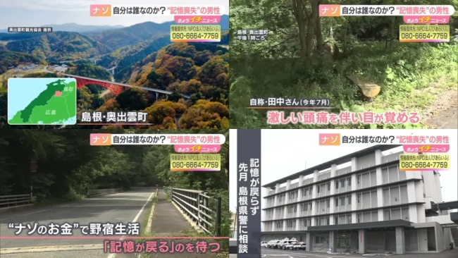 由于这哥的遭遇太过离奇,成功吸引了日本各大电视台的注意力。ABC新闻等媒体开始争相报道,呼吁公众们帮忙传播,帮这位突然从岛根深山醒来,骤然失忆两个月,目前自称田中一的神秘男寻找家人。